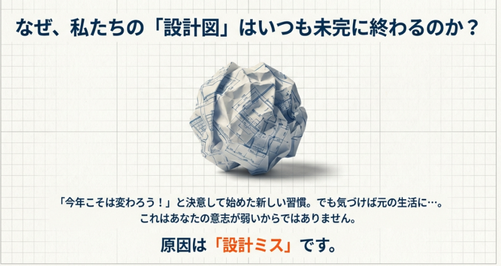 去年の1月1日に立てた目標。「来月から本気出す」と先延ばしにした計画。「次こそは」と誓った習慣。