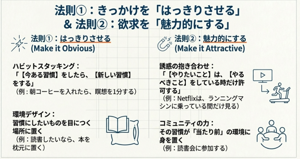 | 良い習慣を作るコツ | 悪い習慣を断つ逆転法 | 具体例 |