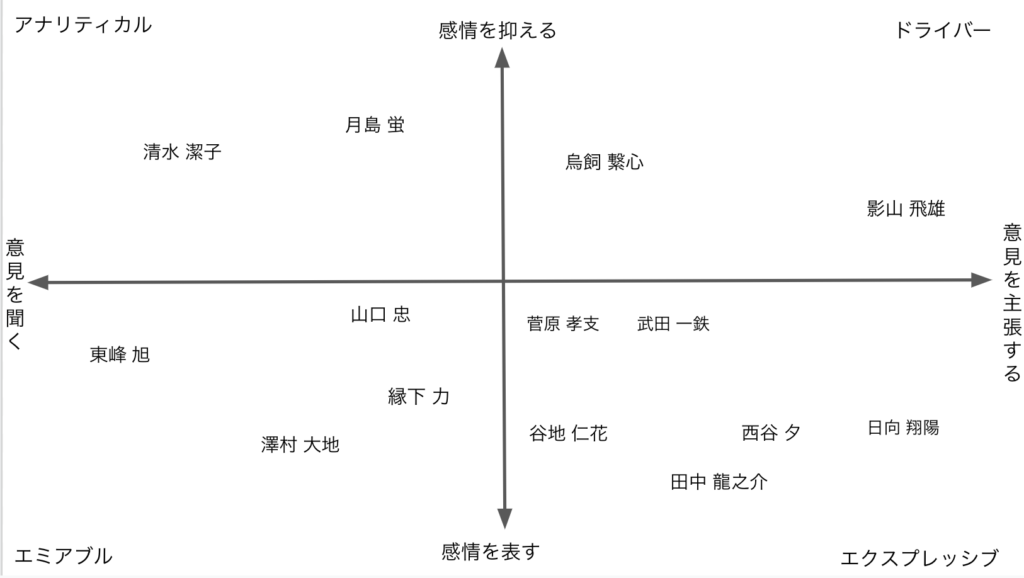 今回はハイキュー!!のソーシャルスタイル分類をしてみました。