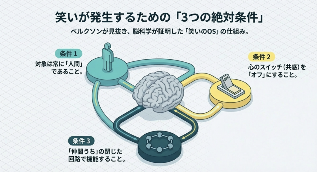 100年前にベルクソンが見抜き、現代の脳科学が証明した「笑いの3条件」があります。