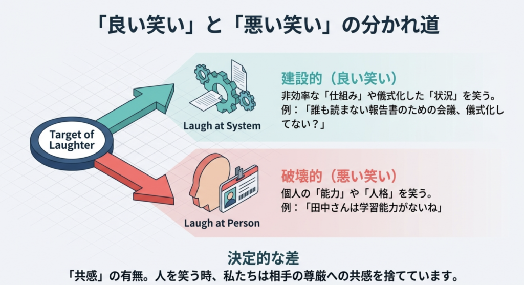 ✅ 笑いは「仲間うち」で盛り上がるが、使い方次第で排除の道具にもなる