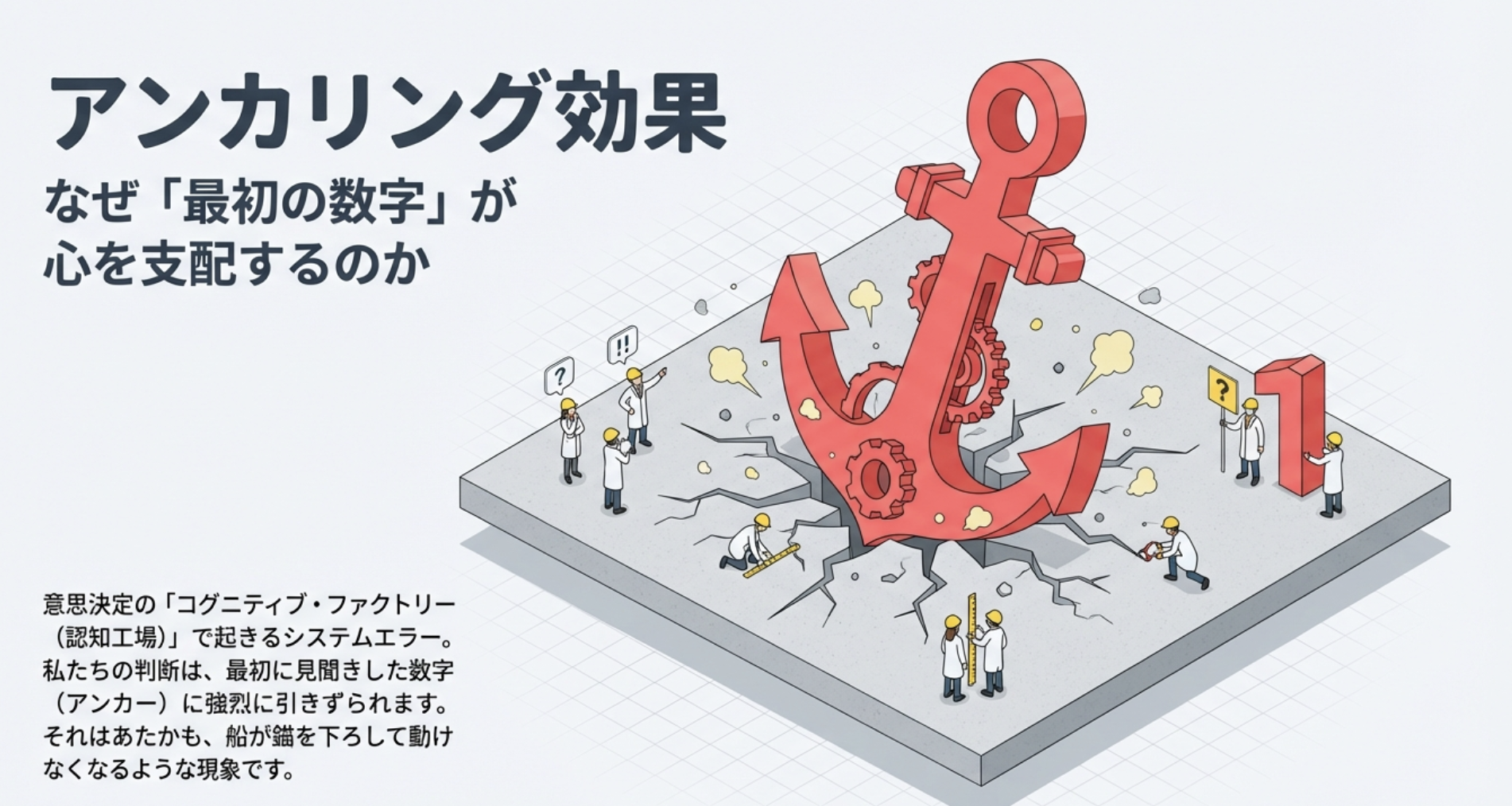 - **応用:**価格提示、交渉の初手、目標設定、報道の数値などで”最初の数”が判断の骨格になり得ます