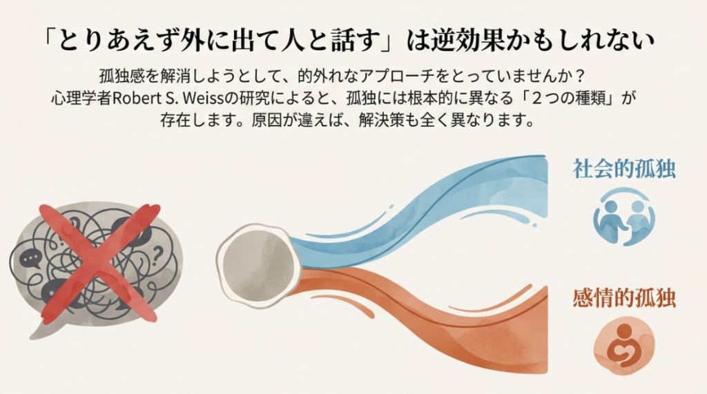 この記事では、あなたが感じている孤独がどちらのタイプかを確認したうえで、心理学的根拠のあるアクションを具体的に紹介します。