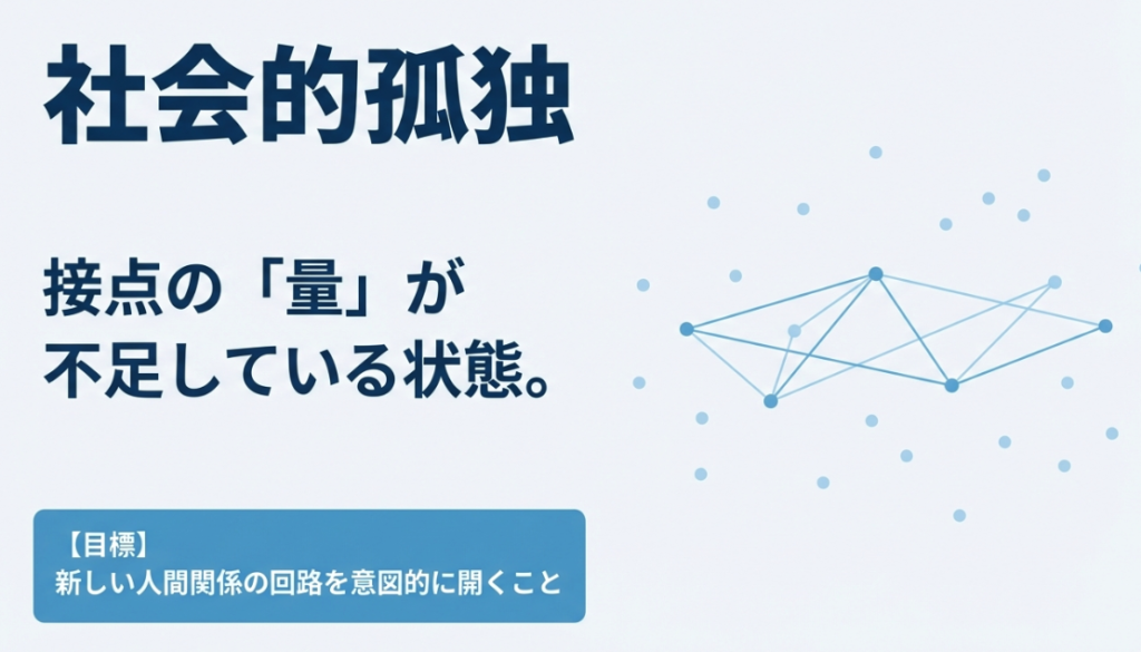 社会的孤独は「接点の量」に関わる孤独です。新しい人間関係の回路を意図的に開くことが有効です。
